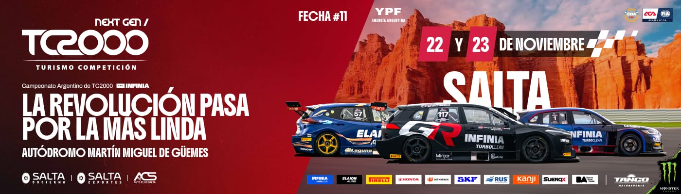 El 22 y 23 de noviembre el Autódromo “Martín Miguel de Güemes” de la provincia de Salta, volverá a recibir después de 6 años al 46º Campeonato Argentino de TC200 YPF INFINIA y a la Copa Rookie Latam. Los nuevos vehículos SUV de 500 hp de potencia llegan por primera vez al trazado salteño para revolucionar con la 11º fecha del año el norte argentino junto al Zonal del NOA.